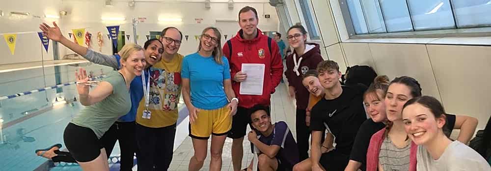 Dave Perry & Sean Brydges, Instructors, celebrate students earning Level 2 Swimming Teaching Certificate in October 2017.