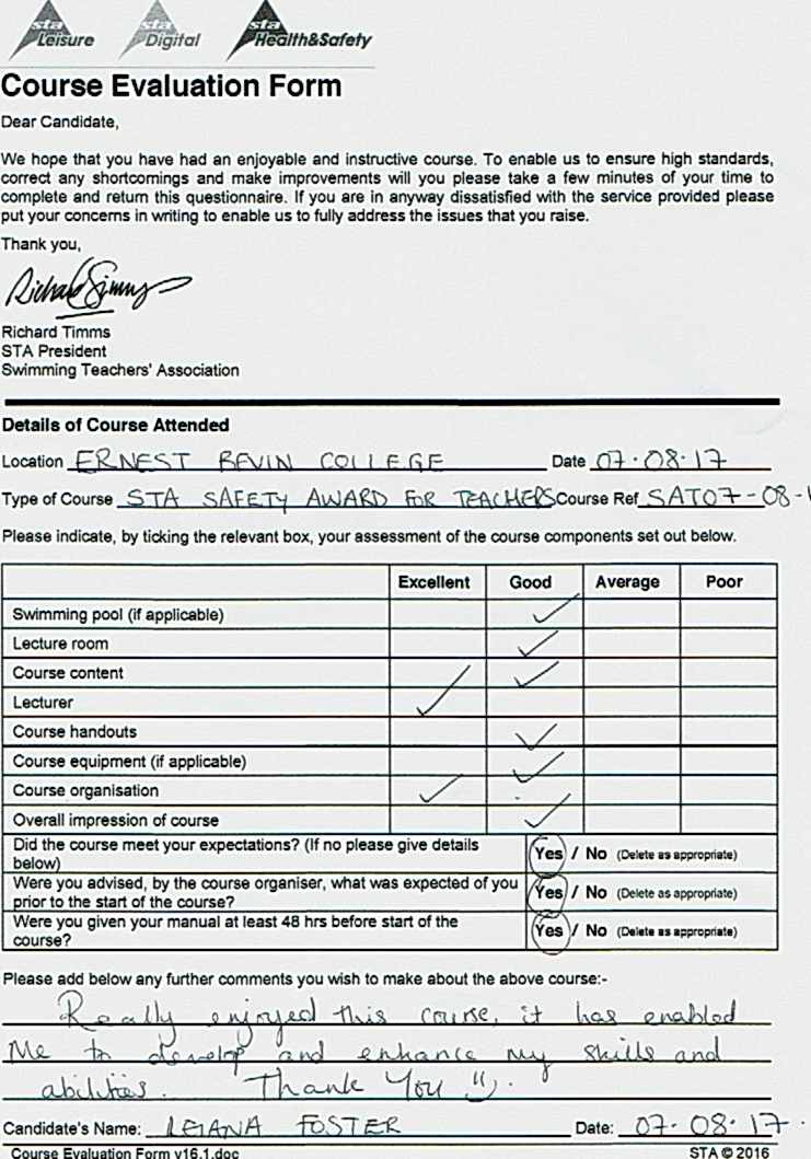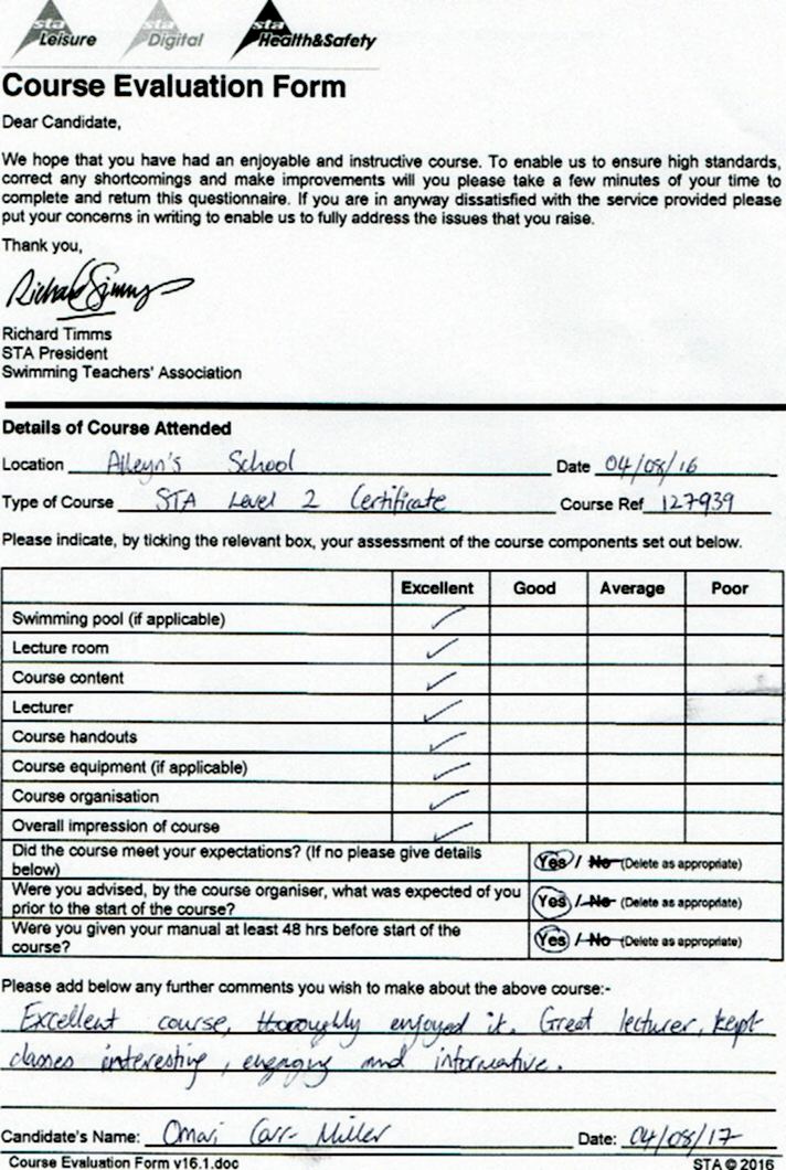 I really enjoyed this course, Dave is a fantastic teacher. I feel much more confident in my own abilities as a swimming teacher and a swimmer!